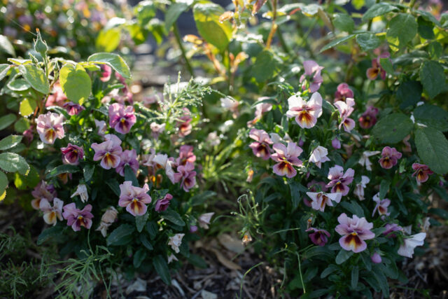 Pansies and violas are easy to grow, cold tolerant, and suitable for small spaces and containers. They have beautiful coloring, and many varieties can produce stems that are long enough for cutting if you are patient and wait for the plants to stretch out. Pansies have a more stocky growth habit and produce larger-faced flowers, while violas have a more airy and wild growth habit and much smaller flower heads. Both are pure magic!