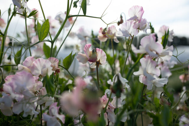 In addition to being beautiful, fragrant cut flowers, sweet peas are also a wonderful source of foliage. Their lush, vining tendrils make a magical addition to arrangements of any size, from petite posies all the way up to large, showy urns.