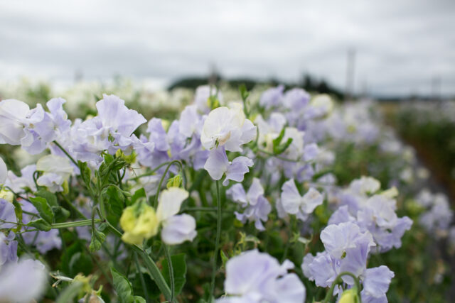 Sweet peas produce abundantly and need to be picked every few days in order to keep up with their blooms. I like to comb the rows every other morning so that I catch flowers right at their prime. For the longest vase life, pick stems that have at least 2 unopened flowers at the tip. While they can be harvested when they are more open, their vase life won’t be quite as long.