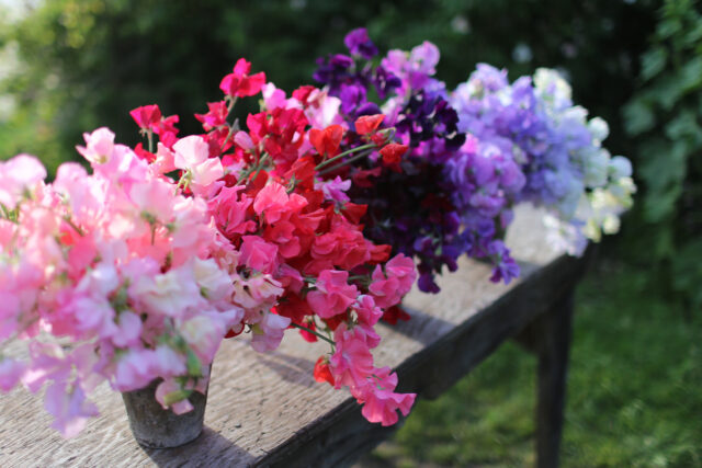 As a cut flower, sweet peas are relatively short-lived, lasting at best 4 to 5 days in the vase; you’ll get the best results if you add floral preservative to the water. Foliage can be picked at any time, but take care when harvesting to gently untangle the vines so that you don’t break the stems. If you want to learn how to sow sweet pea seeds and get plants off to a good start, check out this resource.