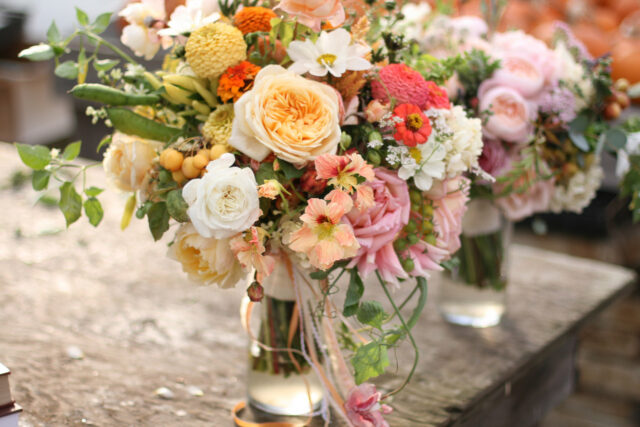 One of my favorite things to include in any bouquet is some kind of edible ingredient, and the more recognizable the better. Over the years I’ve tucked carrots into a famous chef’s bridal bouquet, included chili peppers and tiny eggplant in food-loving grooms’ boutonnieres, sprinkled clusters of cherry tomatoes through hundreds of centerpieces, added raspberries to guestbook displays, and woven scented herbs into as many floral designs as I could manage.