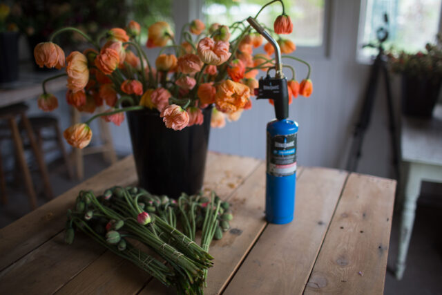 Iceland poppies last a surprisingly long time in the vase if picked at the right stage and conditioned properly. Harvest when buds are just starting to crack open; once the flowers open fully, they’re prone to damage. The trick with these ephemeral beauties is to sear the stem ends, using either a flame or boiling water, for 7 to 10 seconds. With this treatment, Iceland poppies will last for nearly a week in the vase.