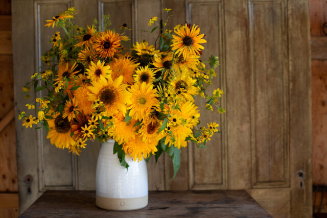 It’s no wonder that sunflowers have long held the top spot as the most commonly grown cut flower worldwide—they are ridiculously easy to grow, thrive during the dog days of summer and early autumn, bloom abundantly, and require very little attention to thrive. They are also one of the very best flowers to arrange en masse.