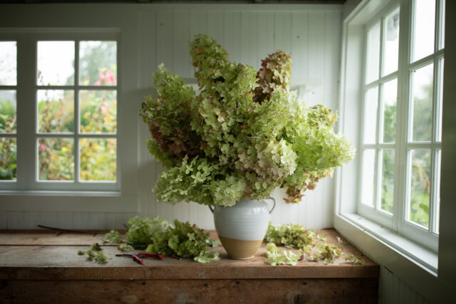 When most people think of hydrangeas, they picture the big, blue mophead types that are grown in great abundance all along the East Coast. But I am much more partial to the PeeGee varieties, which look like large, creamy cones. They are incredibly productive and very easy to grow.
