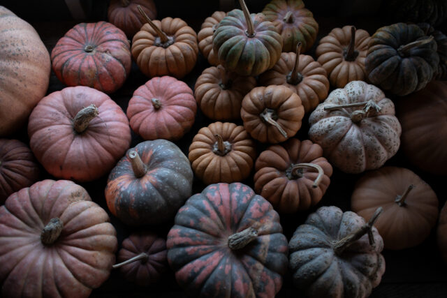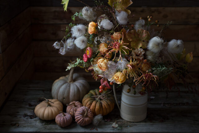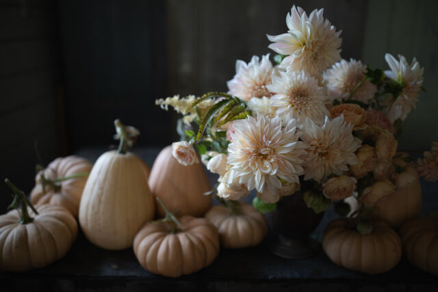 There’s nothing more beautiful than a big pile of antique-colored pumpkins and gourds scattered down a table, interspersed with jugs of fall-blooming flowers. The Floret Library features more than 50 varieties in a lovely range of colors, shapes, and sizes.