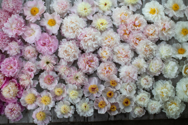 We have a large patch dedicated to these beauties, and while it includes a number of the big, full-flowered varieties, I’m becoming more and more drawn to the weirder, more novelty types, including Itohs, singles, and Japanese forms. You can explore the different types in the Floret Library.