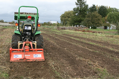 After bundling, labeling and boxing all of our supplies we finally bring in the tractor. Ahhh the tractor, how I love it so! Within hours the whole mess has been mowed, tilled and readied for cover crop planting.