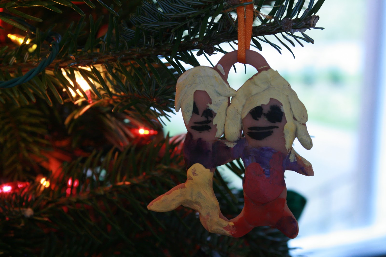 | An Elora and Jasper ornament made by Elora many years ago. treasure. |
