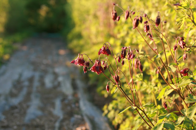 With all of the cool temps and rain many of the Columbine are topping out around 4ft. in height. Huge thick stems loaded with delicate blooms resembling upturned ladies in their full petticoats.