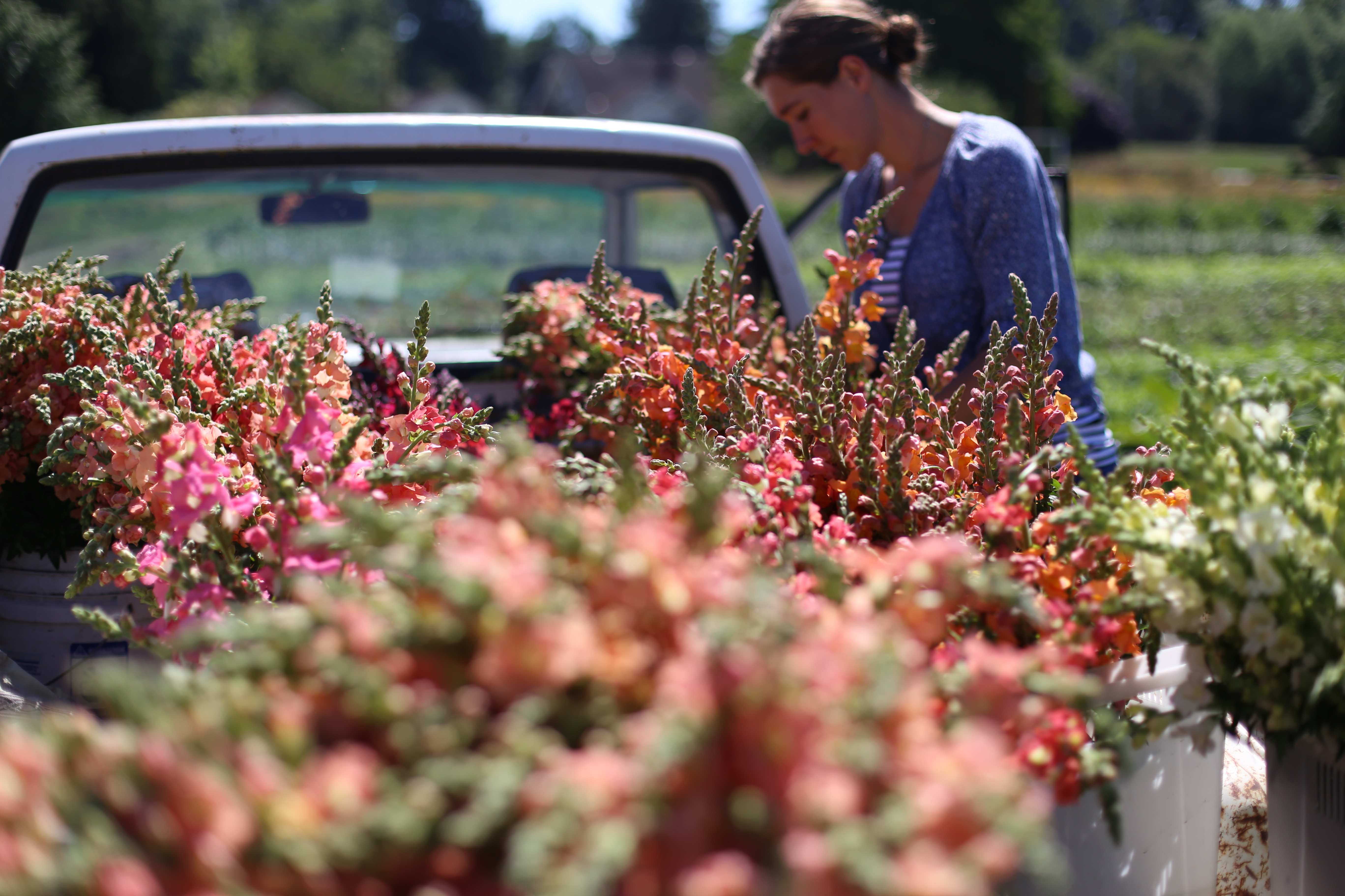 Here in WA we are plagued by the western flower thrips and since our farm is managed organically there isn’t a real solution to the issue. After a few seasons of fretting about the millions of tiny dark specks crawling all over the blooms (they love snaps) I just stopped growing white, yellow and soft pink varieties. The thrips don’t damage the snapdragon flowers like they do with Roses or Lisianthus but on the light colored blooms they really stand out and attract attention. By sticking with the deeper, more saturated tones the thrips are nearly invisible even up close.