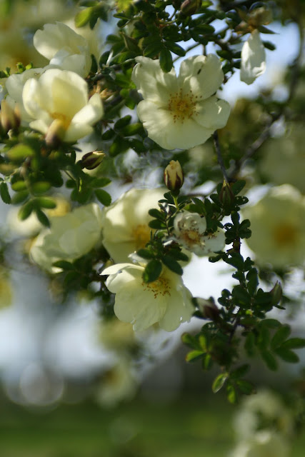 I think I would like to be born as this little treasure, Rosa cantabrigiensis. Nearly always the first to flower, she swoops in and unfurls her golden petals , announcing that Spring is here in full force.