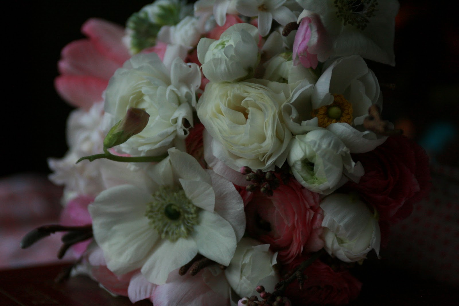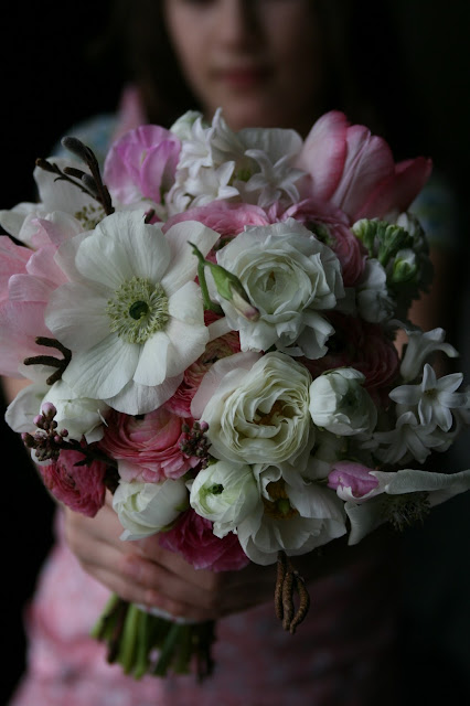| Bouquet includes Ranunculus, Tulips, Anemones,Hyacinths, Sweet Peas, Stock, Birch twigs and Pussy Willows. |
