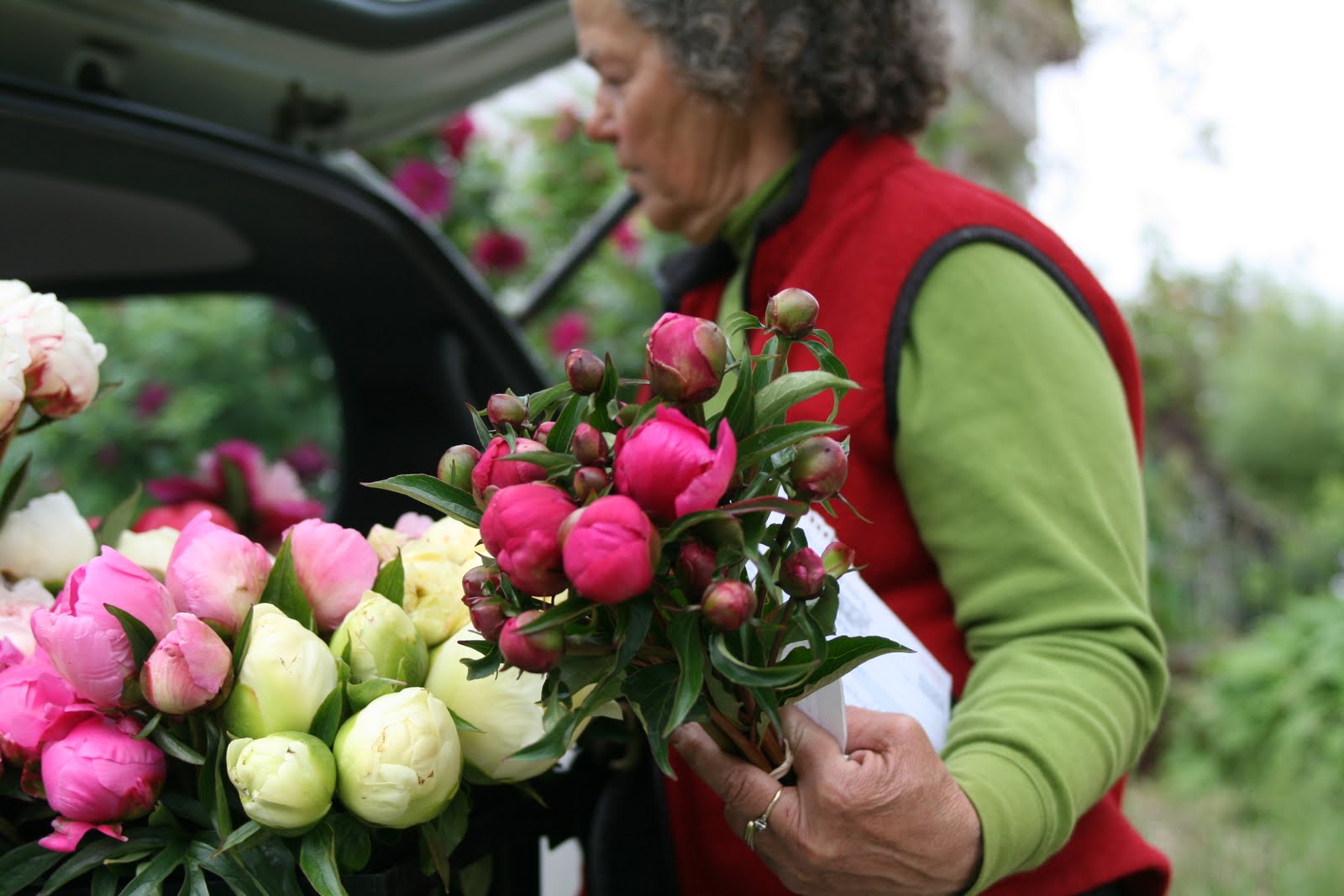 This lovely lady is Geraldine and she is a woman you want to know if you’re in the flower biz. She owns a small operation, North Field Farm, up near the Canadian border where she grows a staggering 80 different varieties of Peonies.