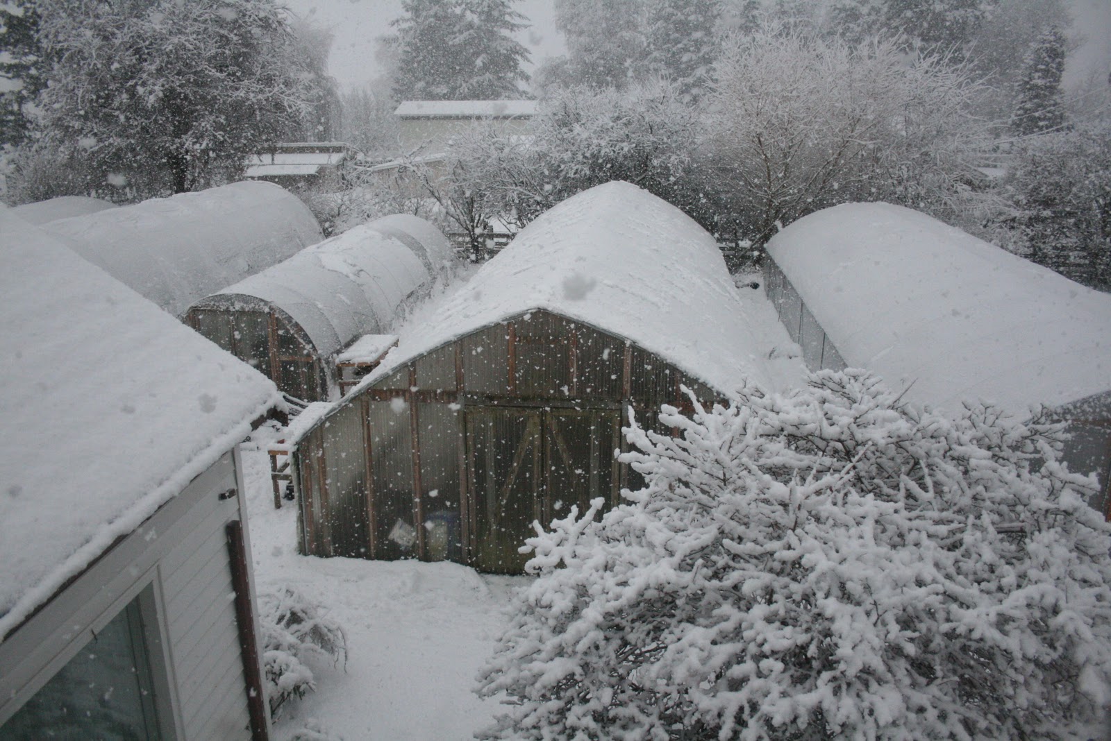 Love, love the images of your snow-covered greenhouses–a lot of work, but lovely just the same!
