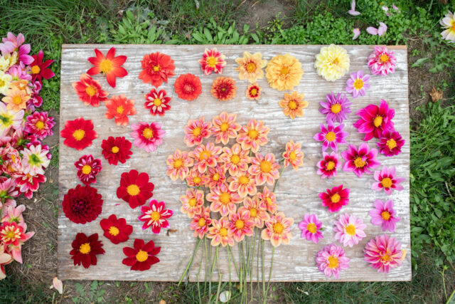 Back when we were primarily cut flower growers selling large volumes of bunched blooms to grocery stores and florists, we focused on a combination of bright, bold, ball-shaped varieties that would hold up well on display and dinner plate varieties in a soft pastel range for our design customers.