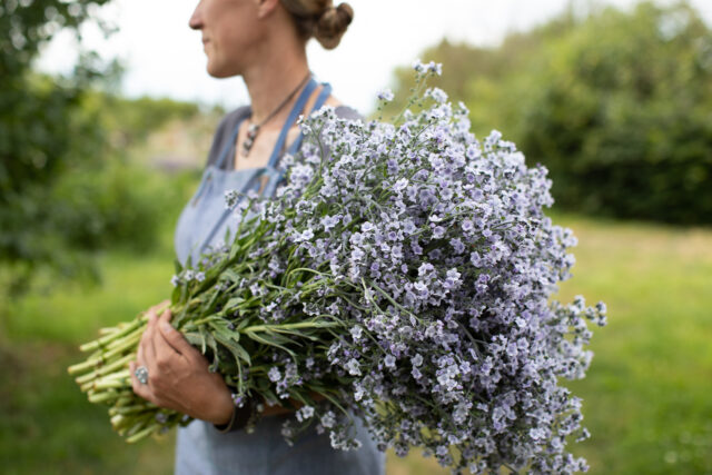 When she passed, years later, her husband shared flower seeds with everyone at the service. Mandy planted them back at the farm and noticed a rare and beautiful lavender flower amid all the more common blue-colored forget-me-nots. The symbolism of that one flower’s unique charms potentially being carried on and shared in perpetuity struck Mandy, and she began a 5-year process of selecting for that lavender flower until it bred completely true. It was such a beautiful way to honor a beautiful person.