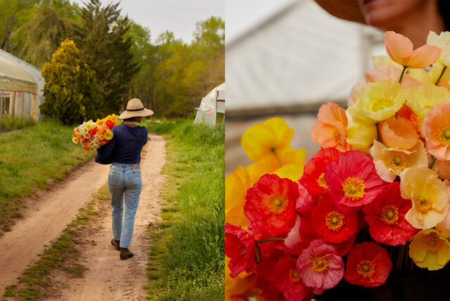I’d work from 7:00 a.m. until midnight. Running from the tunnels to the fields, harvesting poppies, ranunculus, tulips, daffodils, anemones, hellebores, and snaps. Watering, bundling, printing labels, packaging, running full boxes across the farm eight at a time, trying to do up to 90 orders a day. Loading up FedEx, then running back to the studio to bundle flowers all night for the next day’s shipments. I did not walk that whole time. Every step taken was running. Adrenaline and a heightened sense of urgency and responsibility fueled every action.