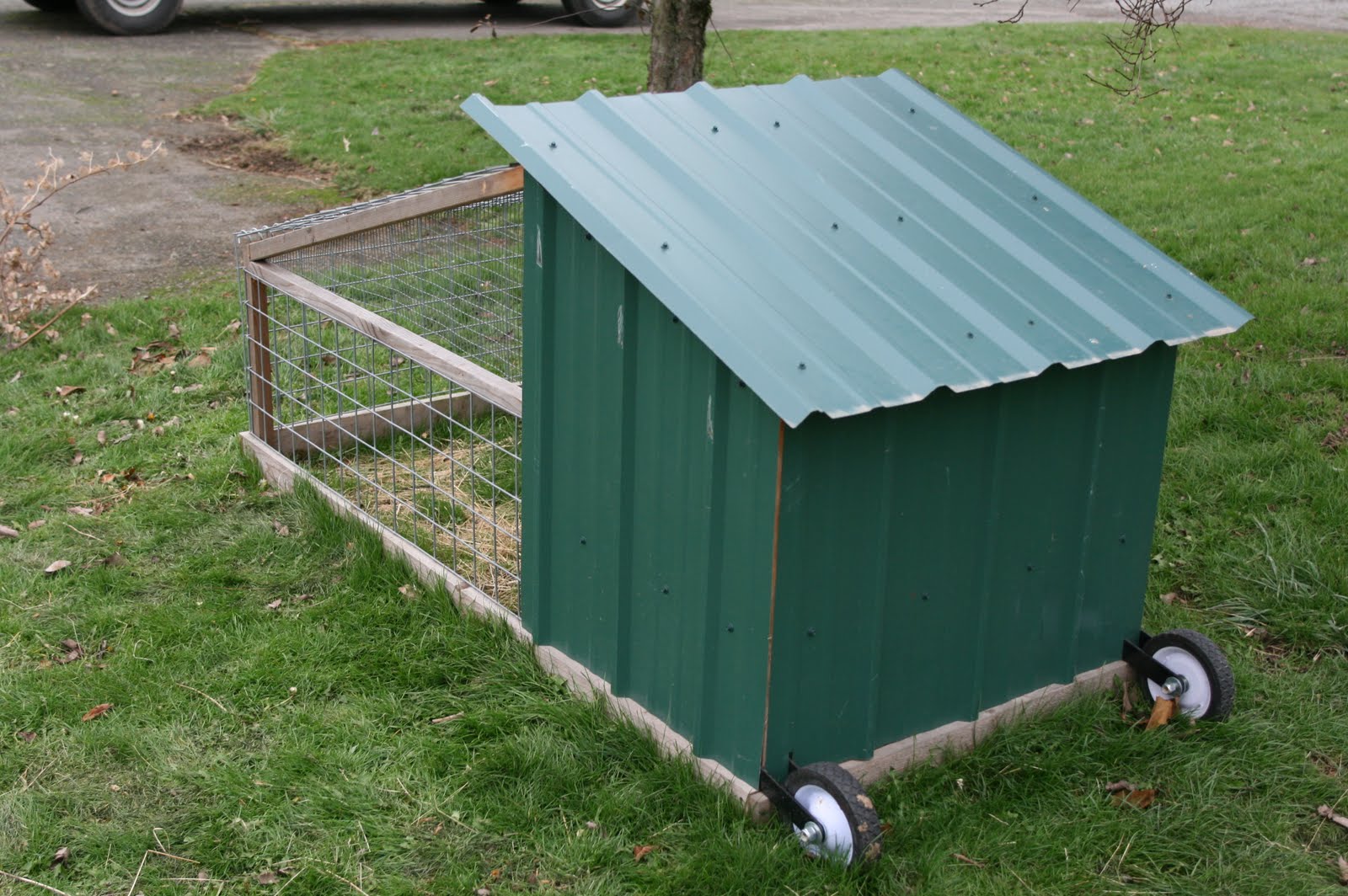 This sweet mini coop belongs to my friend Nina. Her husband is a carpenter who specializes in restoring old barns. Occasionally he’ll set aside some time to whip her up a fancy little chicken house. A small fleet of these darling moveable pens dot the lawn surrounding their house.