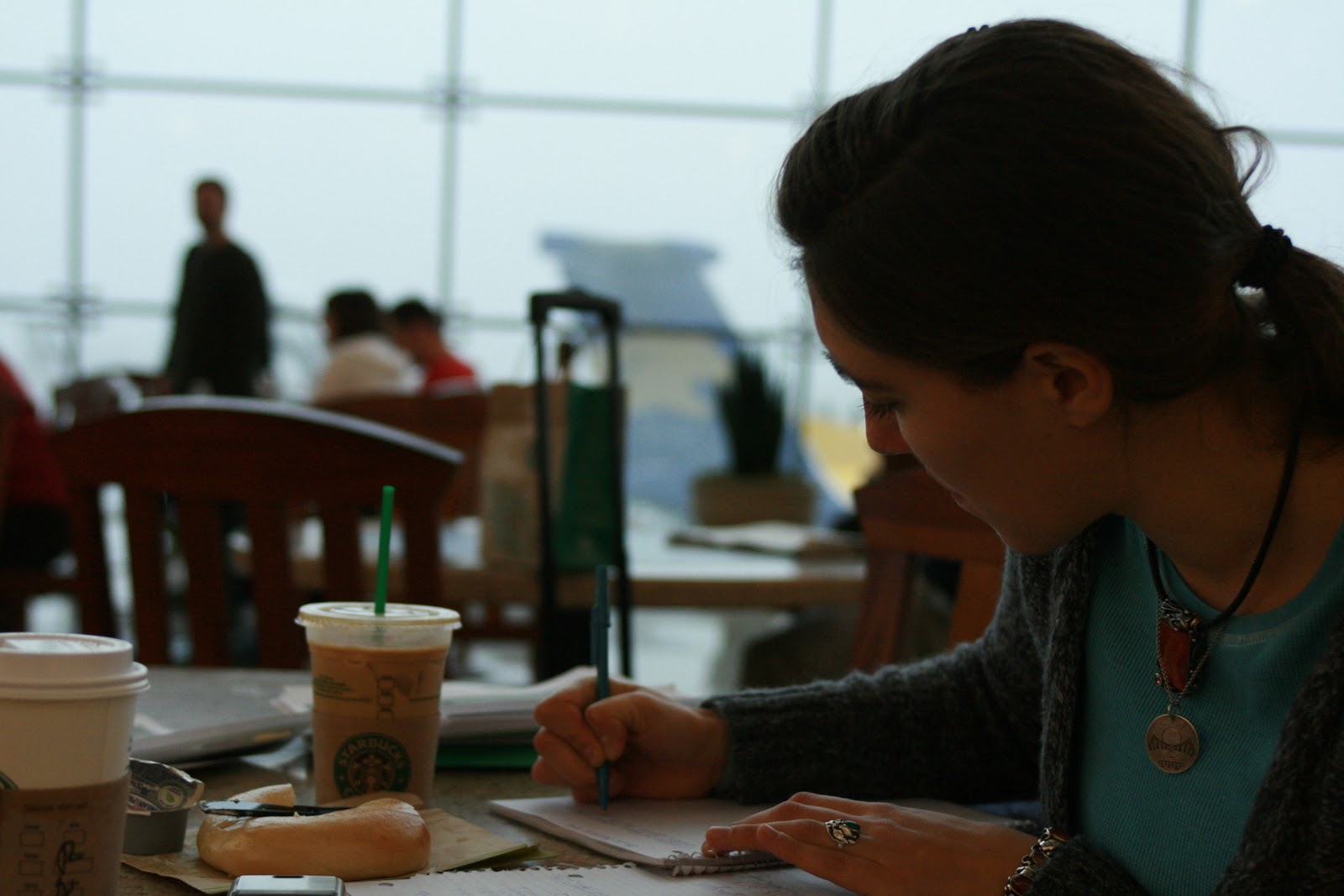 | I had to document the moment, but standing on my chair in the crowded dining area of Sea Tac airport brought quite a few stares. Ha,ha! Anything for the shot right?! |