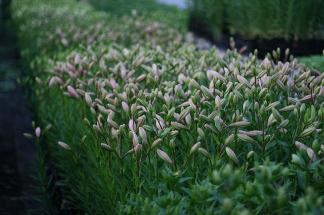 lilies are grown even tighter, in these nifty black plastic bulb crates with potting soil.we planted nearly 17,000 lilies this season and all were grown in one small greenhouse!