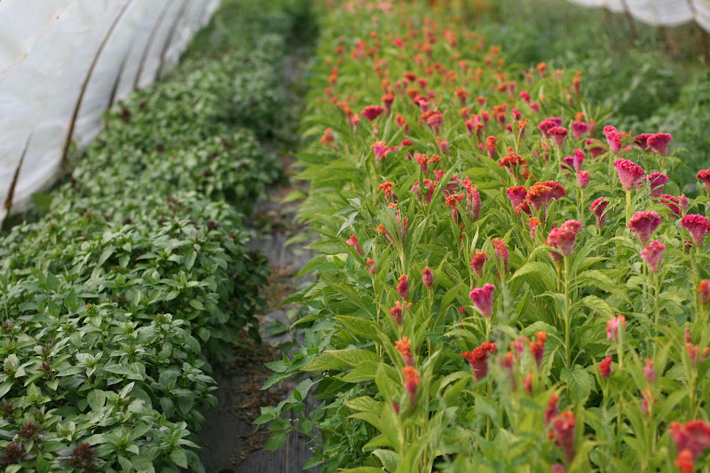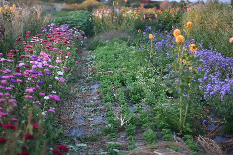 sunflowers are squeezed even closer. in this bed we planted roughly 700-800 babies. the more room you give them the bigger their heads and stalks become so the tight spacing ensure nice, useable stems.